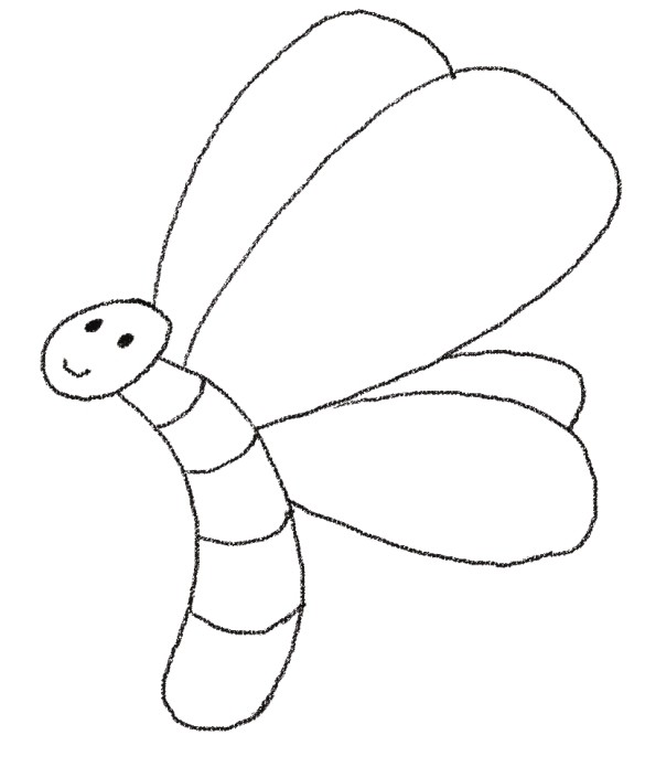 有些昆虫的结构比较复杂,比如蜻蜓、毛毛虫等。小朋友们可以从昆虫的头部开始,一点一点地接着画。