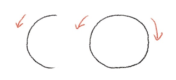 想要一笔画好圆圈有些困难,小朋友们可以分两笔来画。