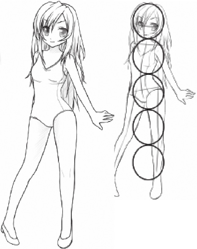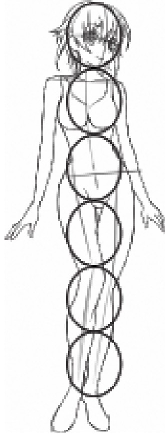 5头身的人物头部要大些圆些,肩比头宽些,身体结构没有那么明显,整个人物带些可爱的感觉。