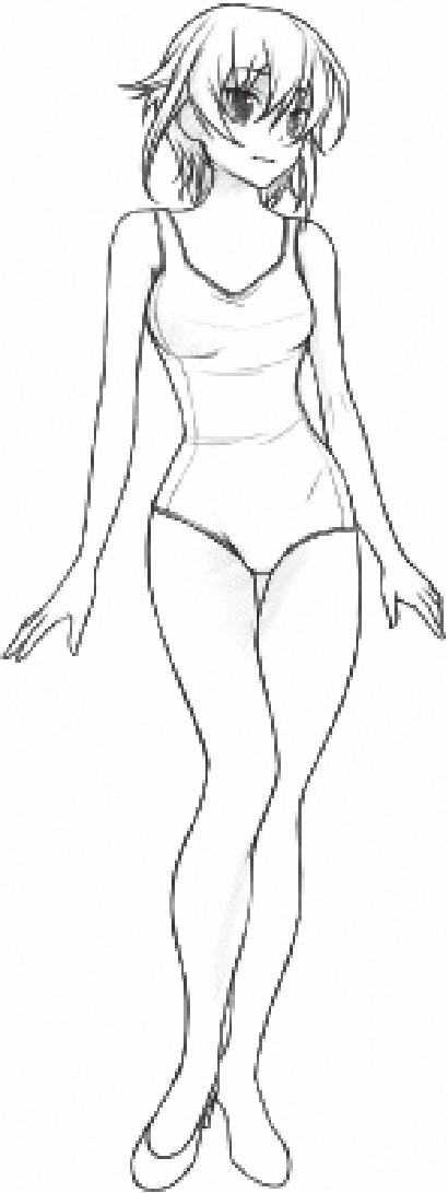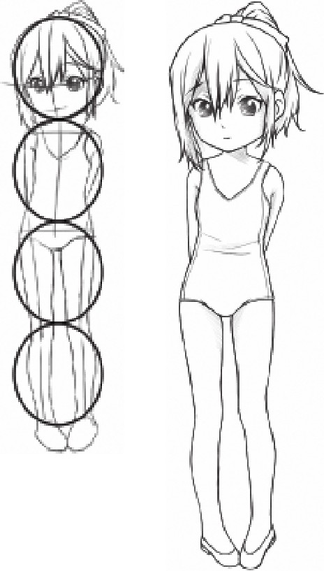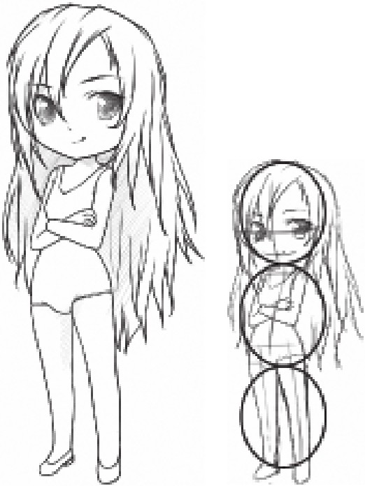3头身的人物肩宽几乎为头宽的一半,人物的身体用简单的线条表现即可。