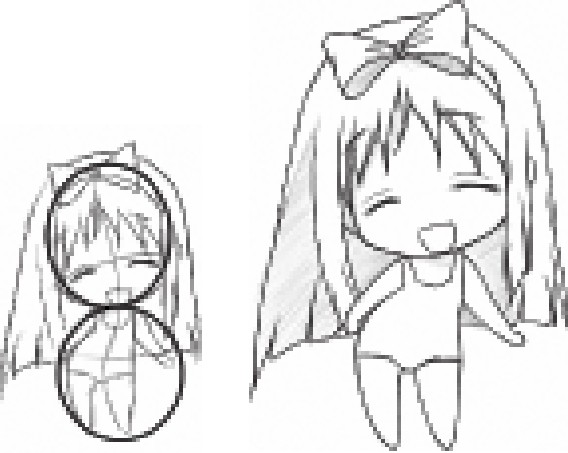 2头身的人物头部大而圆,身体简单表现即可,2头身人物是卡哇伊的典型代表,大而圆的头部,圆嘟嘟的身体,怎么能让人不喜爱呢。