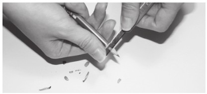 越是削到笔尖的位置,越要注意轻轻地削,以防削断笔芯。