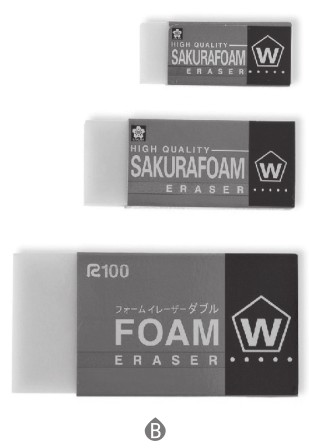 绘图橡皮较硬,通常在绘画的起稿阶段使用,能够将线条擦得很干净。