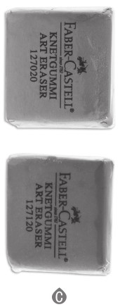 柔软,像橡皮泥一般,能够随意捏出不同的形状,主要用于绘画过程中的减淡效果处理。