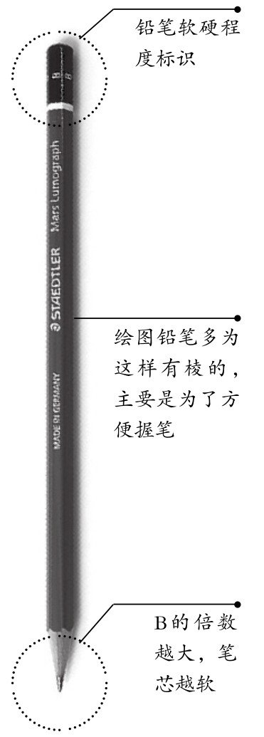 铅笔也叫绘图铅笔,是画素描最主要的工具,在专业的美术用品店可以选购到不同品牌、不同型号的各式各样的铅笔,无论是什么样的绘图铅笔,在铅笔的末端都标有类似“HB”、“2B”这样的型号,这也是区分它们重度的标志。