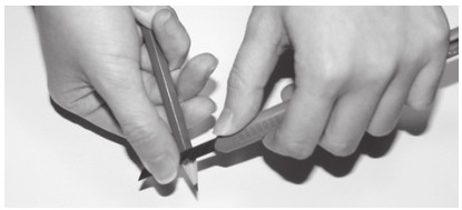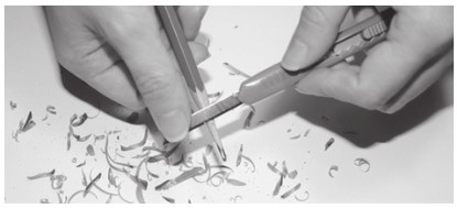 用拿铅笔的手的拇指抵住刀子的背面来控制刀刃的动向。
