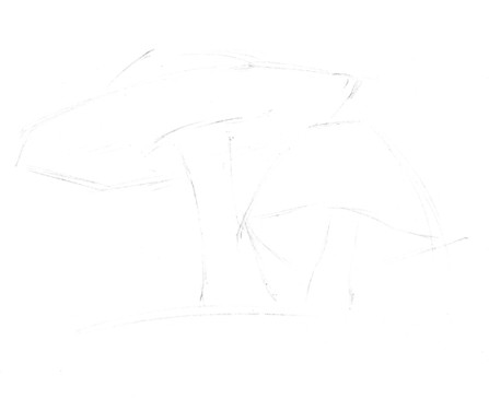 进行菌柄的绘画,顺着蘑菇的生长方向画,注意光源的方向。