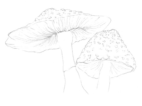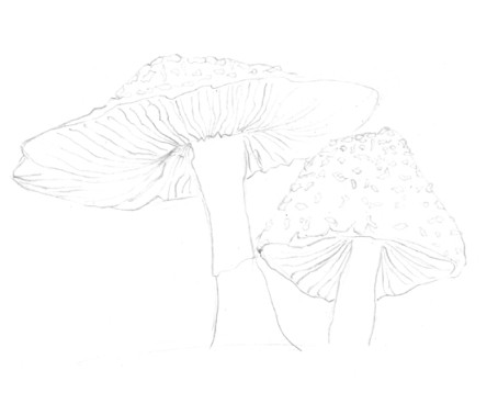 把整体的细节继续用铅笔画得更加清晰。注意菌褶的延伸方向。