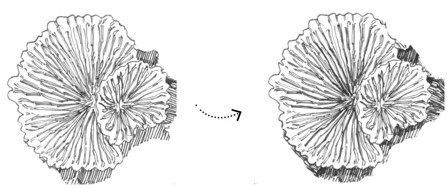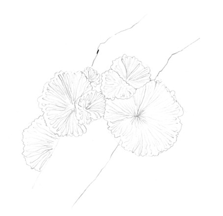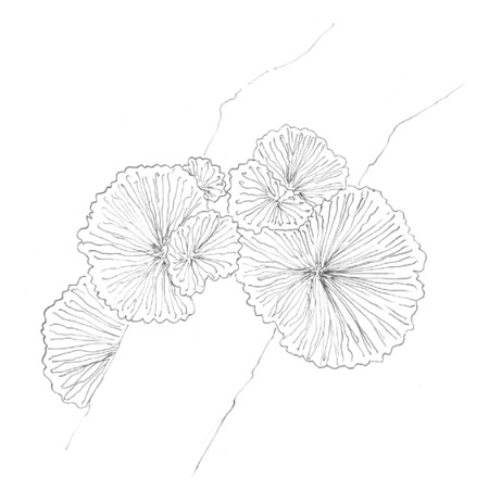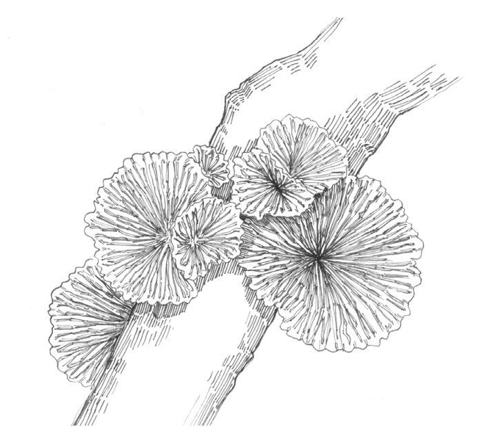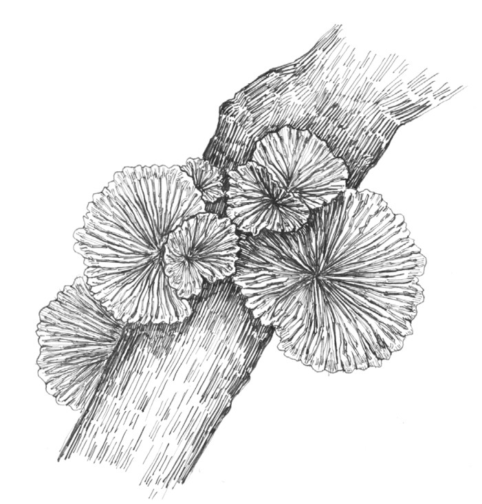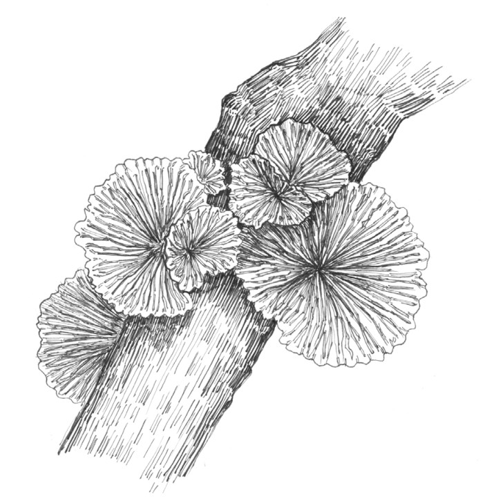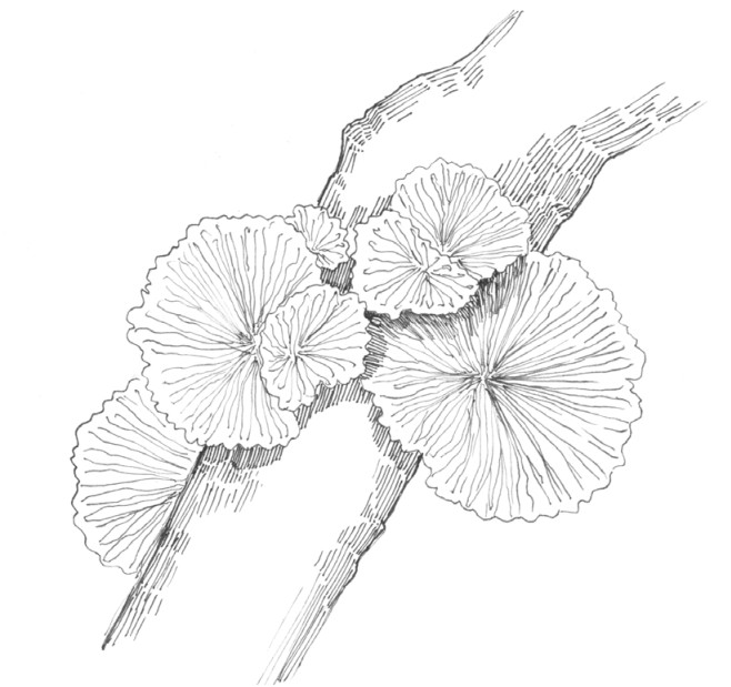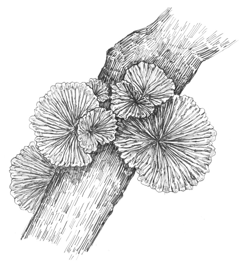 调整裂褶菌整体的黑白灰。对菌边明暗进行刻画,强调菌体的厚度。