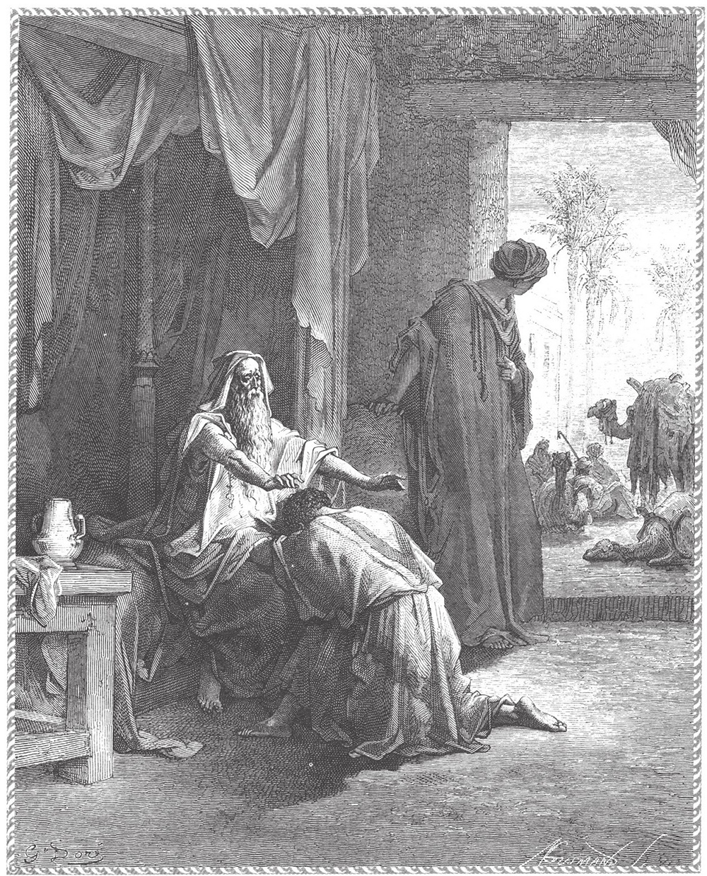 以扫还不甘心,他深知父亲对自己的偏爱,就边哭边哀求:“父亲啊,你只有一样可祝福的吗?我父啊,求你也为我祝福。”