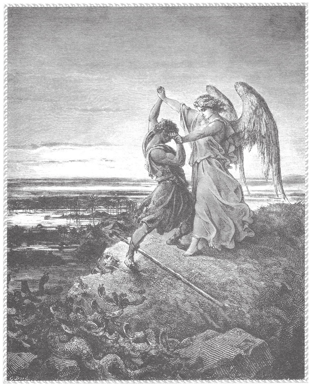 以扫恨恨地在父亲面前抱怨:“雅各都干了什么事?他欺骗了我两次,先是夺去了我长子的名分;您看,他现在又夺了我的福分。”