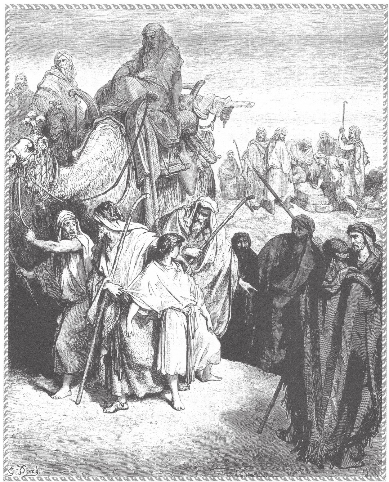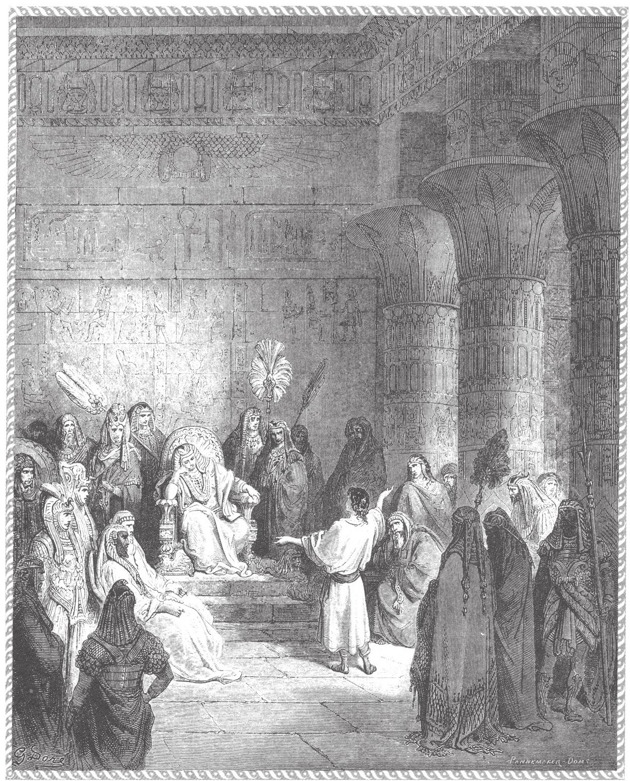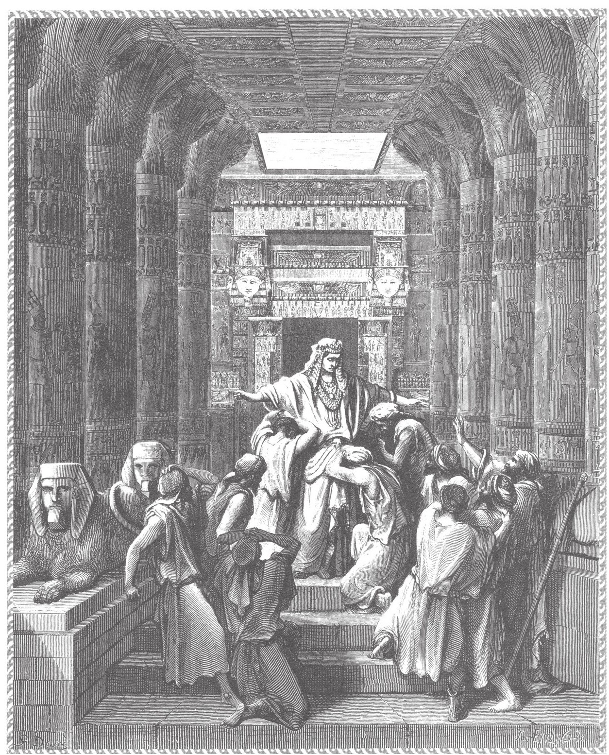 约瑟随后带家人去了埃及都城,他嘱咐好家人面见法老时要如何应对,然后从兄弟中挑选五个去见法老。法老问他们:“你们以何为业?”