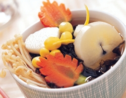 如果菌体瘦小、参差不齐、变色、无光泽则不要选购;此外,食用菌罐头内的原汤导致菌体发咸,可焯水除去咸味。具体方法是:锅中加入清水、少许葱姜片和花椒烧沸,稍煮片刻后再放入食用菌焯水,捞出后放入冷水中过凉,沥净水分后就可以用多种烹调方法烹制菜肴食用。