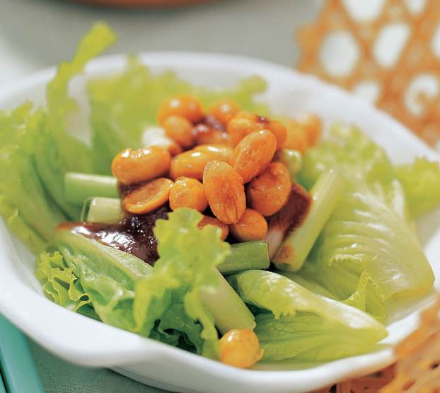 营养互补:维生素C在深绿色蔬菜中最为丰富,而黄豆则富含维生素B 2 ,若用黄豆芽炒菠菜,则两种维生素均可获得;柿子椒中富含维生素C,胡萝卜中富含胡萝卜素,土豆中富含热量,若将三者合炒,则可营养互补。
