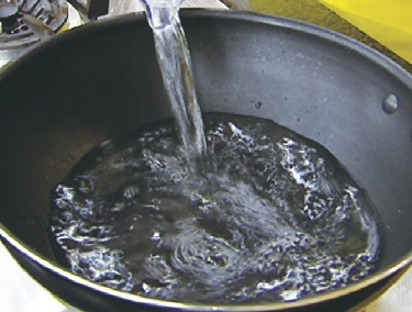 2.净锅置火上,加入适量清水烧沸,倒入土豆丝焯烫一下,捞入凉水中浸泡。