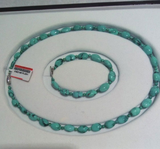 绿松石的缺点是受热易褪色,也容易受强酸腐蚀而变色。硬度越低的绿松石孔隙越发达,越具有吸水性和易碎的缺陷,油渍、污渍、汗渍、化妆品、茶水、铁锈等均有可能顺孔隙进入,导致难以去除的色变。所以,绿松石要保持清洁干净,避免高温状态和强力碰撞。
