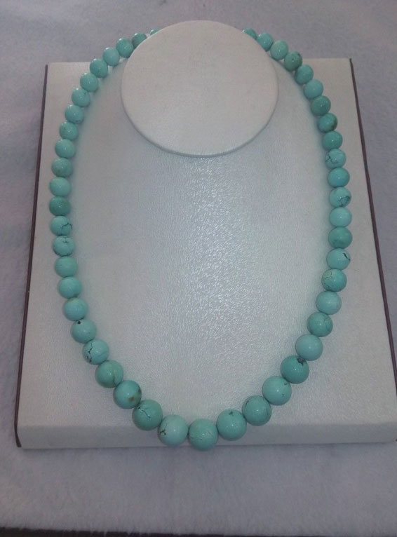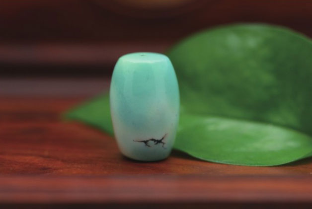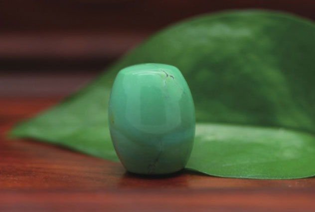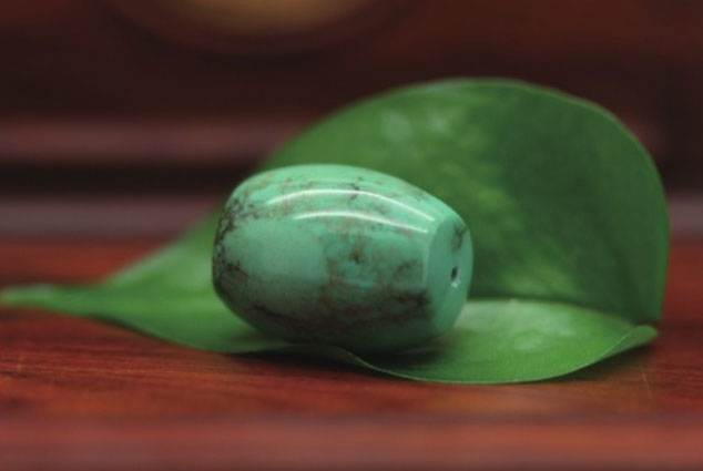 绿松石的缺点是受热易褪色,也容易受强酸腐蚀而变色。硬度越低的绿松石孔隙越发达,越具有吸水性和易碎的缺陷,油渍、污渍、汗渍、化妆品、茶水、铁锈等均有可能顺孔隙进入,导致难以去除的色变。所以,绿松石要保持清洁干净,避免高温状态和强力碰撞。