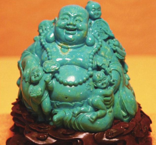 唐代流行用绿松石作为装饰品,常串作项链佩戴。文成公主嫁往西藏时,便以绿松石珠串佩于拉萨的佛像上。