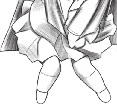 裙子添加阴影后,褶皱效果更加明显,且裙子的体积感增强;腿部的阴影让腿部的结构更加明确。