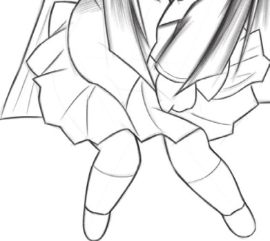 绘制裙子,因为上身向前弯、双膝弯曲,左手放在大腿处,压住裙子,所以要注意裙子的褶皱变化要绘制合理。