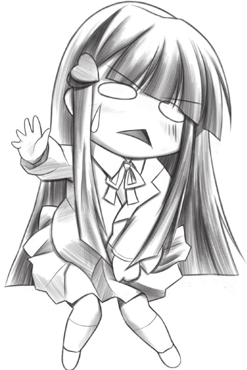 继续刻画草图,因为忍不住,所以是难受的表情;注意衣服褶皱要表现合理。