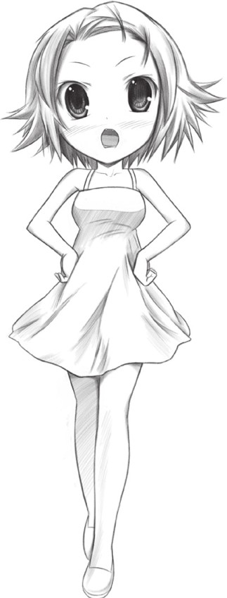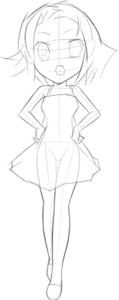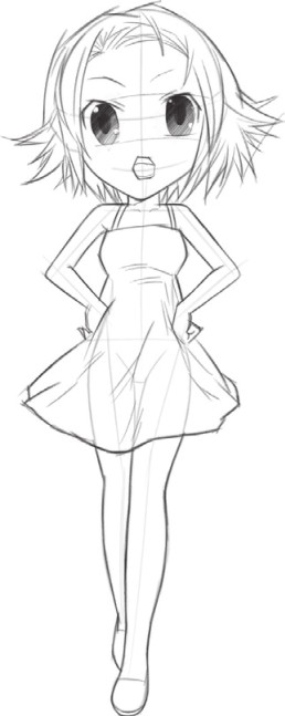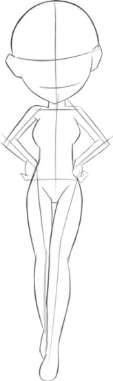 首先简单勾勒出双手叉腰的姿态,注意人物的动作要协调,人体重心要稳。