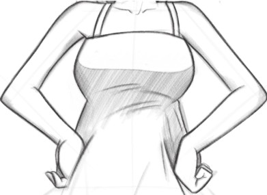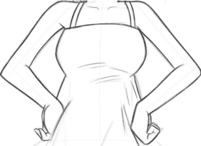 因为女性的胸部是凸起的,所以绘制衣服时要注意绘制出胸部浑圆凸起的效果。