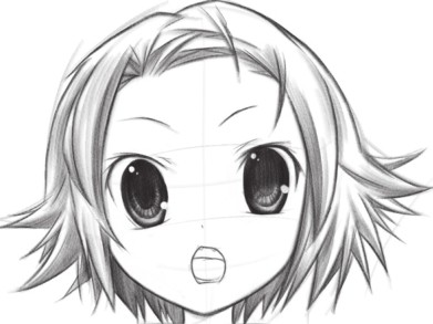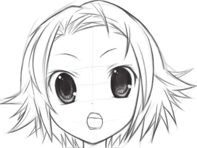 在上一步骤的基础上,大概勾勒出发型样式,确定五官的位置和服装大致的样式。