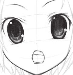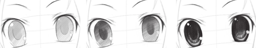 通过拷贝法,在新的纸张上,重新描绘出需要的画稿;从眼睛开始绘制,注意眼睛的结构表现要正确,瞳孔的颜色不能绘制成死黑色的,而是有虚实变化,再加上高光,让眼睛看起来更加有神。