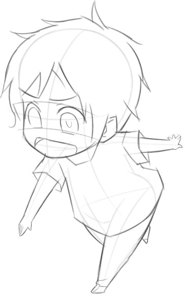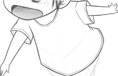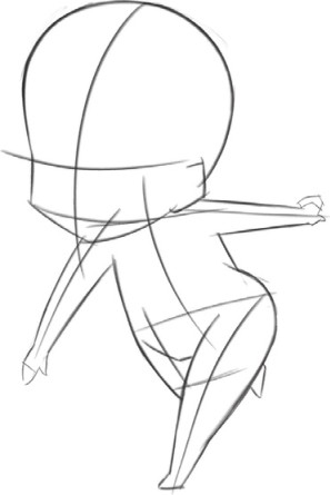 绘制衣服,Q版人物身体很小,为了不让画面看起来很闷,衣服的褶皱简单表现即可;绘制人物的手臂和手时,注意两只手臂的动作要把握准确。