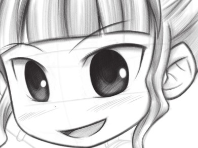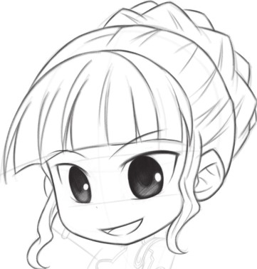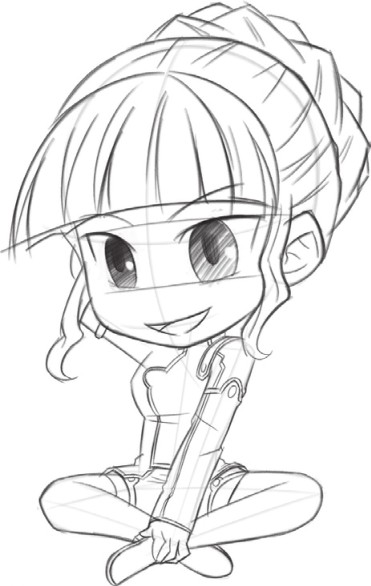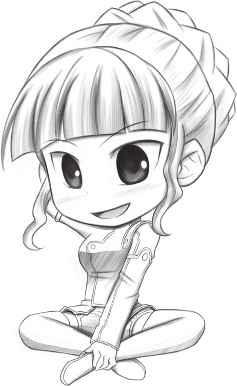 Q版人物要求是可爱的,即使是成年人,也不需要刻画鼻子,用小点表现即可;脸型也是圆圆的。