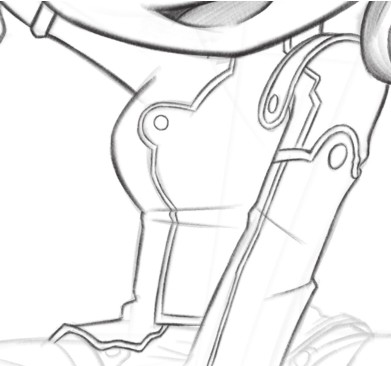 右腿拱起的地方绘制深色的阴影,让拱起的效果更加明显,也让画面空间感增强;通过有虚实变化的阴影,让衣服更加有质感,也让衣服的褶皱效果更加明显。