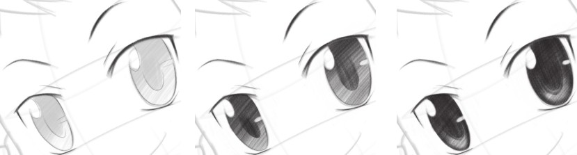 通过拷贝法整理画面。首先绘制眼睛,因为透视关系,两只眼睛的形状不一样;要想让眼睛有神,首先瞳孔的眼神要有虚实的变化,还要有高光和反光的效果。