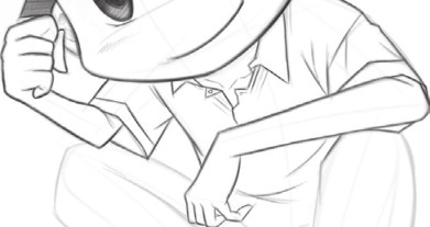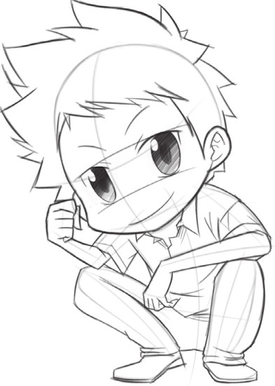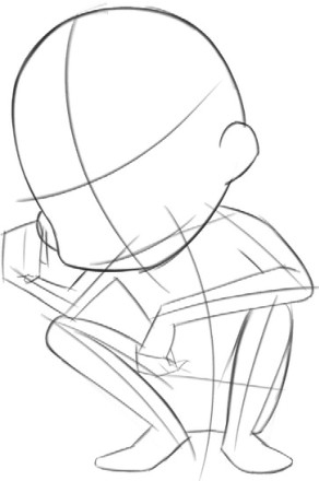 首先简单勾勒出人物蹲时的动作,注意人物动势要把握准确,人体的透视变化要合理。