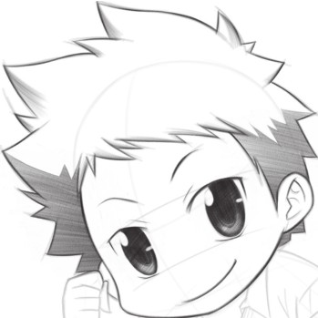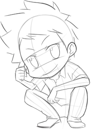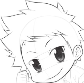 在上一步骤的基础上,大致绘制出人物的发型,如平头还是短碎发等,确定人物五官的位置,还有服装的样式等。