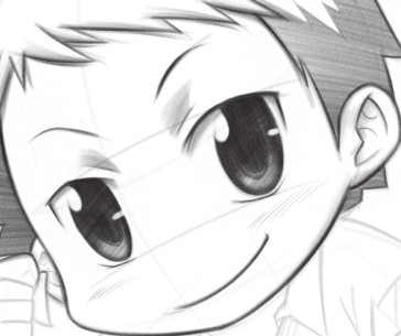绘制头发在额头的阴影,表示头发不是直接贴在额头上的;添加阴影后,人物看起来更加生动。