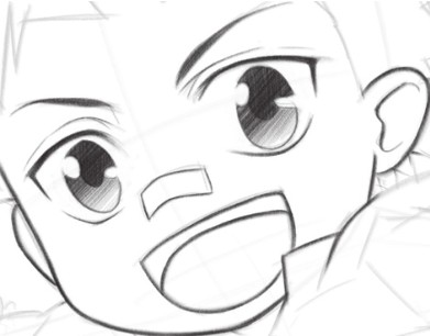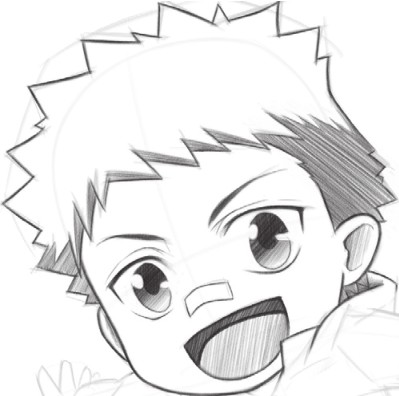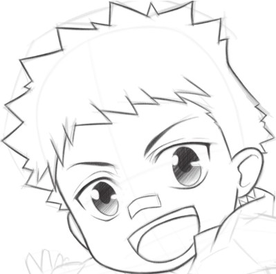在上一步骤的基础上,大概绘制出人物的发型、表情和服装。