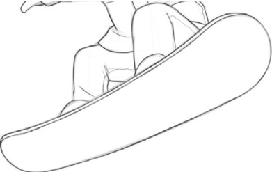 从下往上观察人物,会看到滑板的底部,脚只看到一部分,臀部看不到;注意双腿弯曲的刻画要正确。