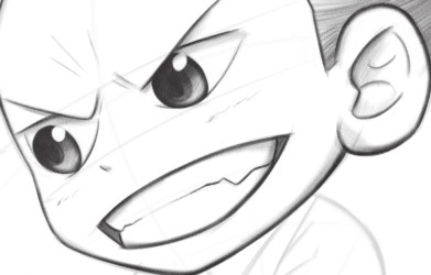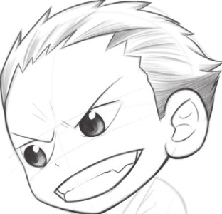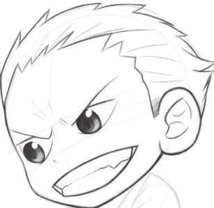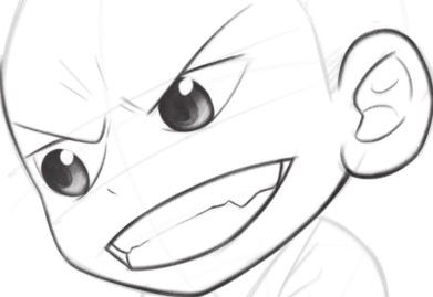 Q版人物要求可爱,所以无论年龄还是性别,鼻子都要是小巧可爱的,用小点表现即可;咬牙切齿的动作能够让人物坚持不懈的表情更加生动。