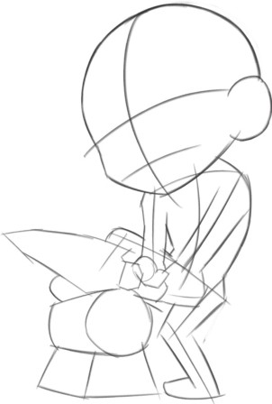 首先简单绘制出人物锯木头的动作,注意动作要协调,人体的透视变化要正确,人物头身比大概是2.5头身比。