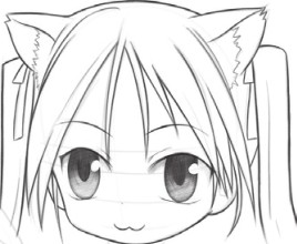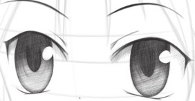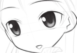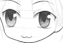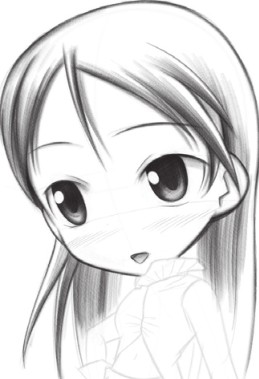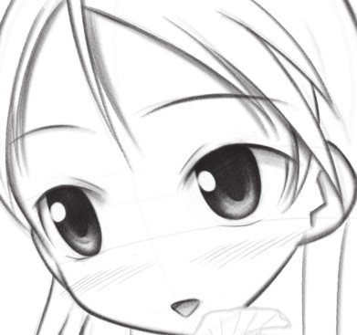 头发在脸上的投影形状要和相对应的头发形状一致,而且要有虚实的变化;脸颊上的虚线让人物看起来更加可爱。