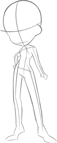 首先简单勾勒出平视视角的人体外形,人物头身比大概是2.5头身比。