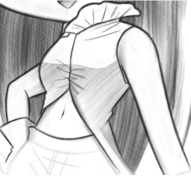 在衣服内侧绘制出有虚实变化的阴影,让画面空间感增强,裤子的阴影让裤子褶皱效果明显,让人物体积感增强,让画面更加丰富。