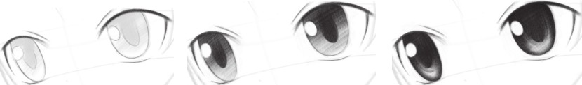 通过拷贝法整理画面;首先从眼睛开始绘制,注意眼睛的结构要正确,绘制的线条要有粗细的变化;瞳孔的颜色是有虚实变化的,而不是死黑一片。