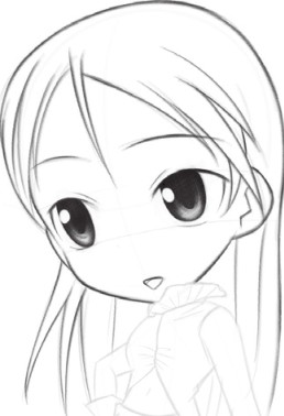在上一步骤的基础上,大致绘制出人物的发型、服装样式,并确定五官的位置。