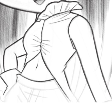 在衣服内侧绘制阴影,让画面前后层次的空间效果更加明显;添加阴影后,衣服和裤子的褶皱效果更加明显,画面更加丰富。