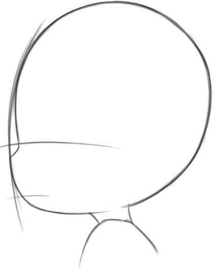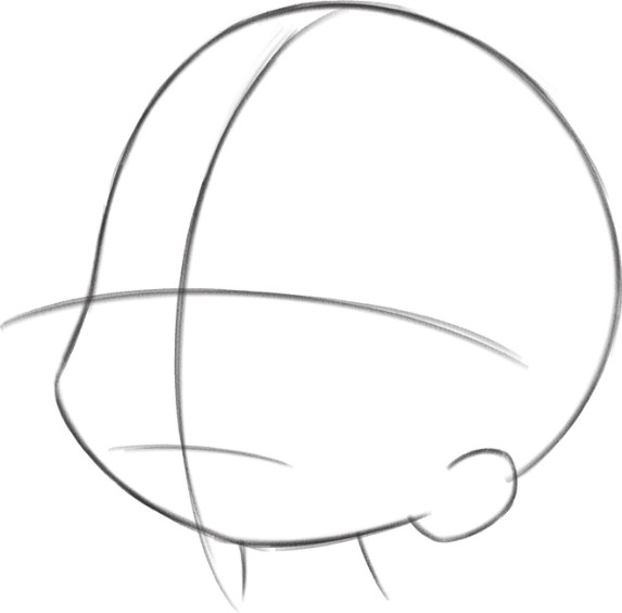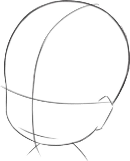 首先简单勾勒出头部外形轮廓;注意俯视视角能看到头顶。
