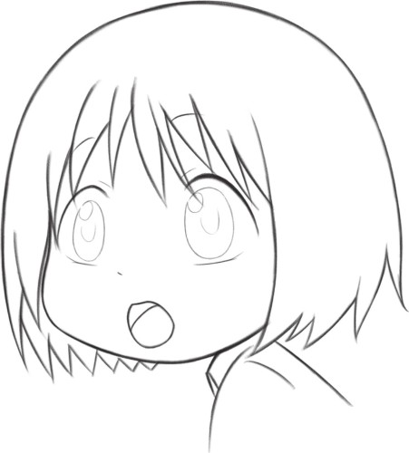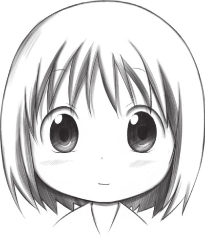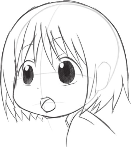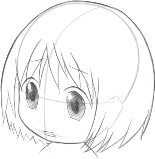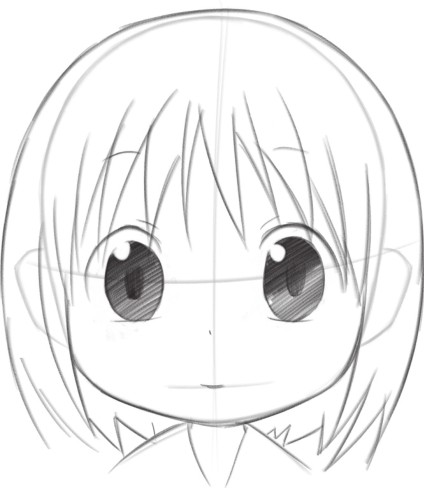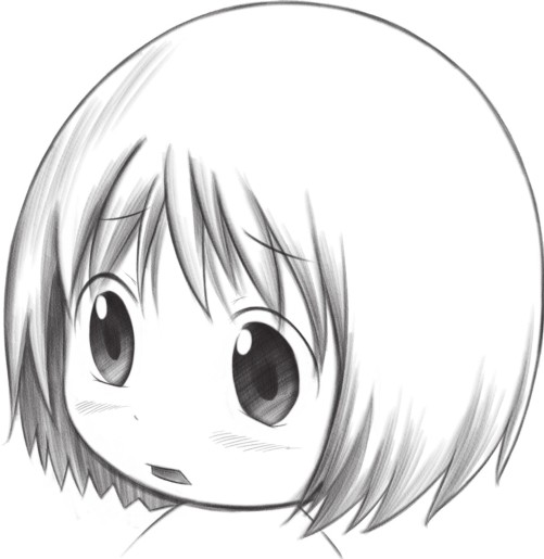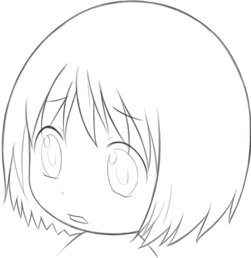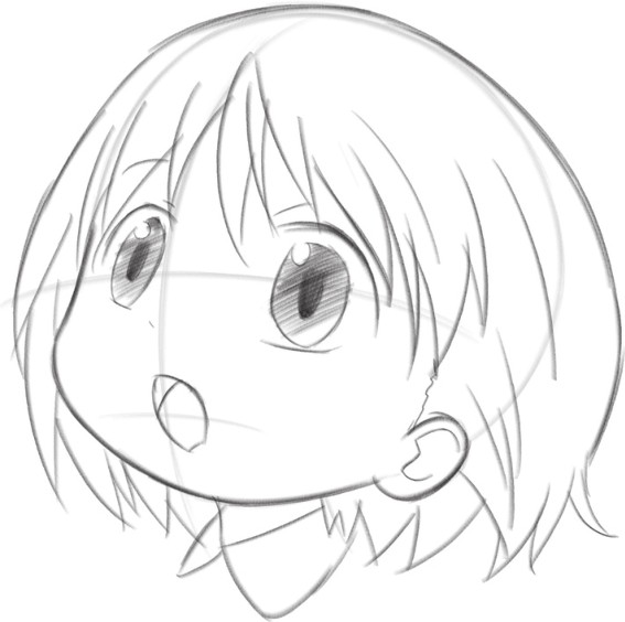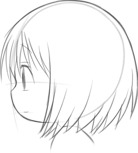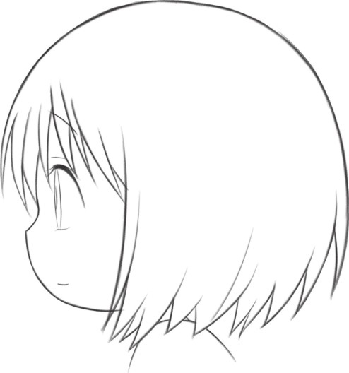 在上一步骤的基础上绘制出人物发型,注意侧面眼睛的表现要正确,额头、鼻子到下巴的轮廓不仅要表现正确,还要看起来可爱。