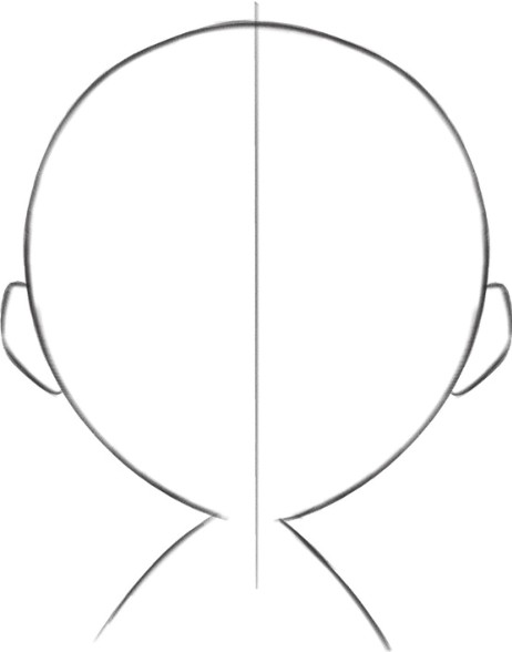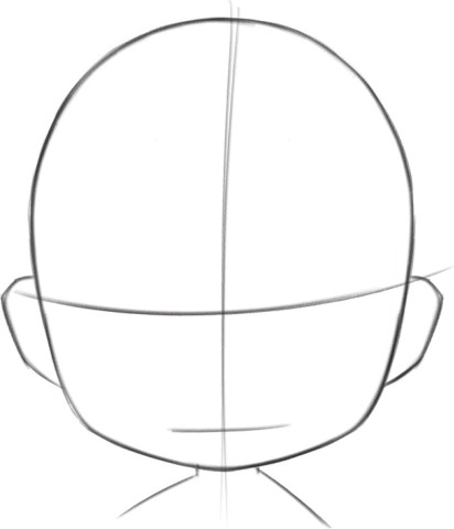首先用简单的线条勾勒出头部外形轮廓;注意头部中线向左边靠拢。