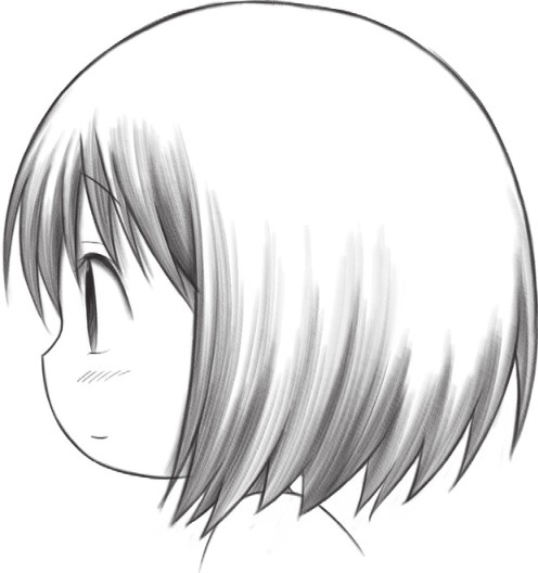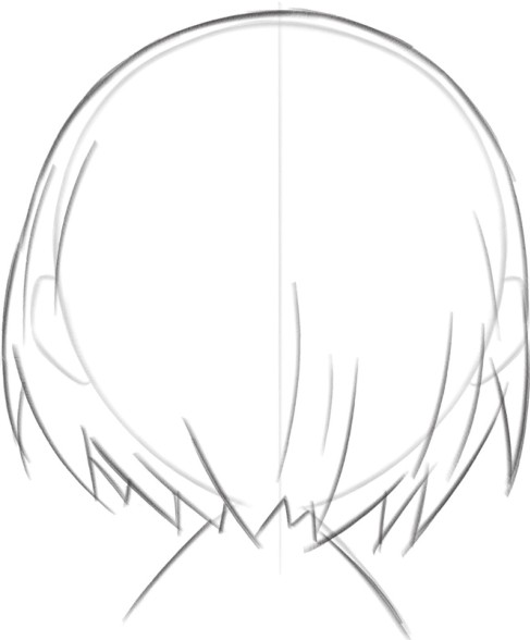 在上一步骤的基础上绘制出发型,因为从背面观察,所以看不到眼睛、鼻子和嘴巴,绘制的时候注意头发生长的走向要正确。